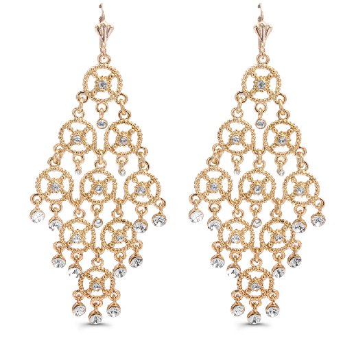 18k Gold Plated Dangle Earrings with Rhinestones (Jewelry)