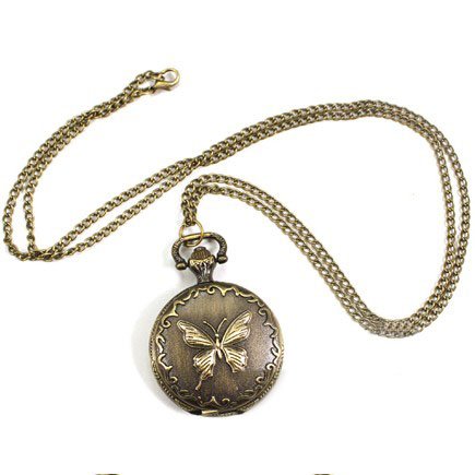 HOTER® Butterfly Design Rotundity Pattern Case Antique Style Delicate Pocket Watch with Chain, Gift idea